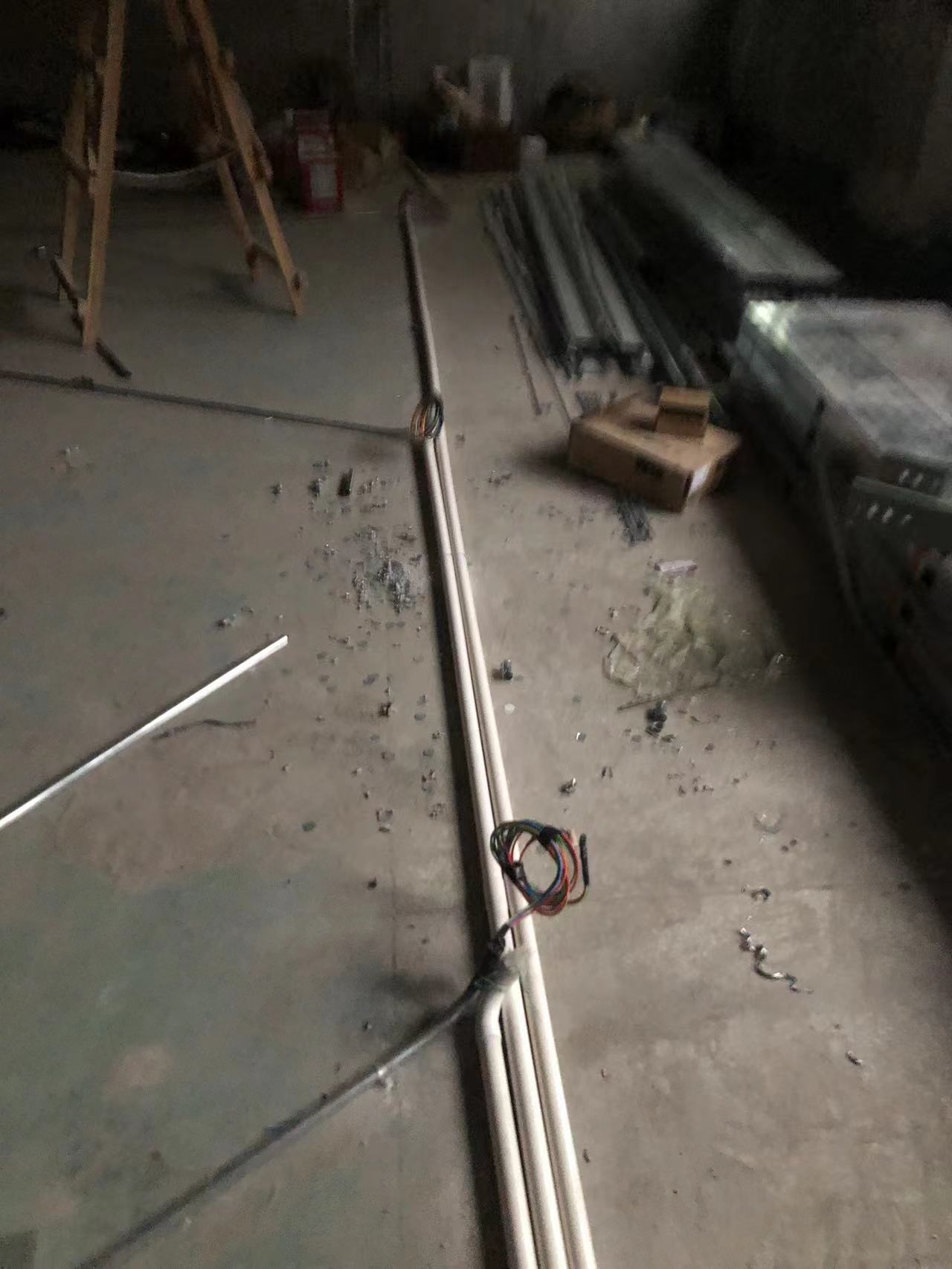 马龙小区改造施工现场,现场施工情况,拉线,做桥架