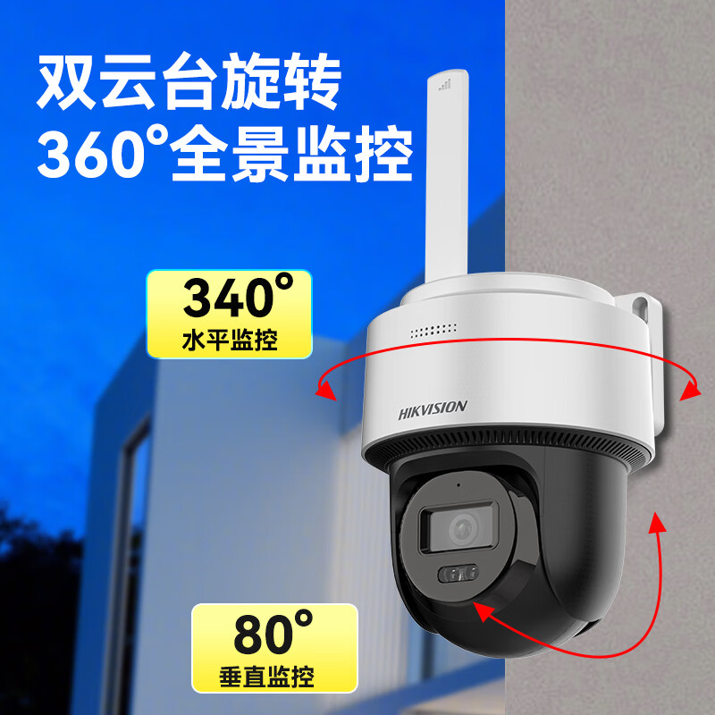 海康威视4G监控器摄像头室外360度全景400万超清云台旋转手机远程